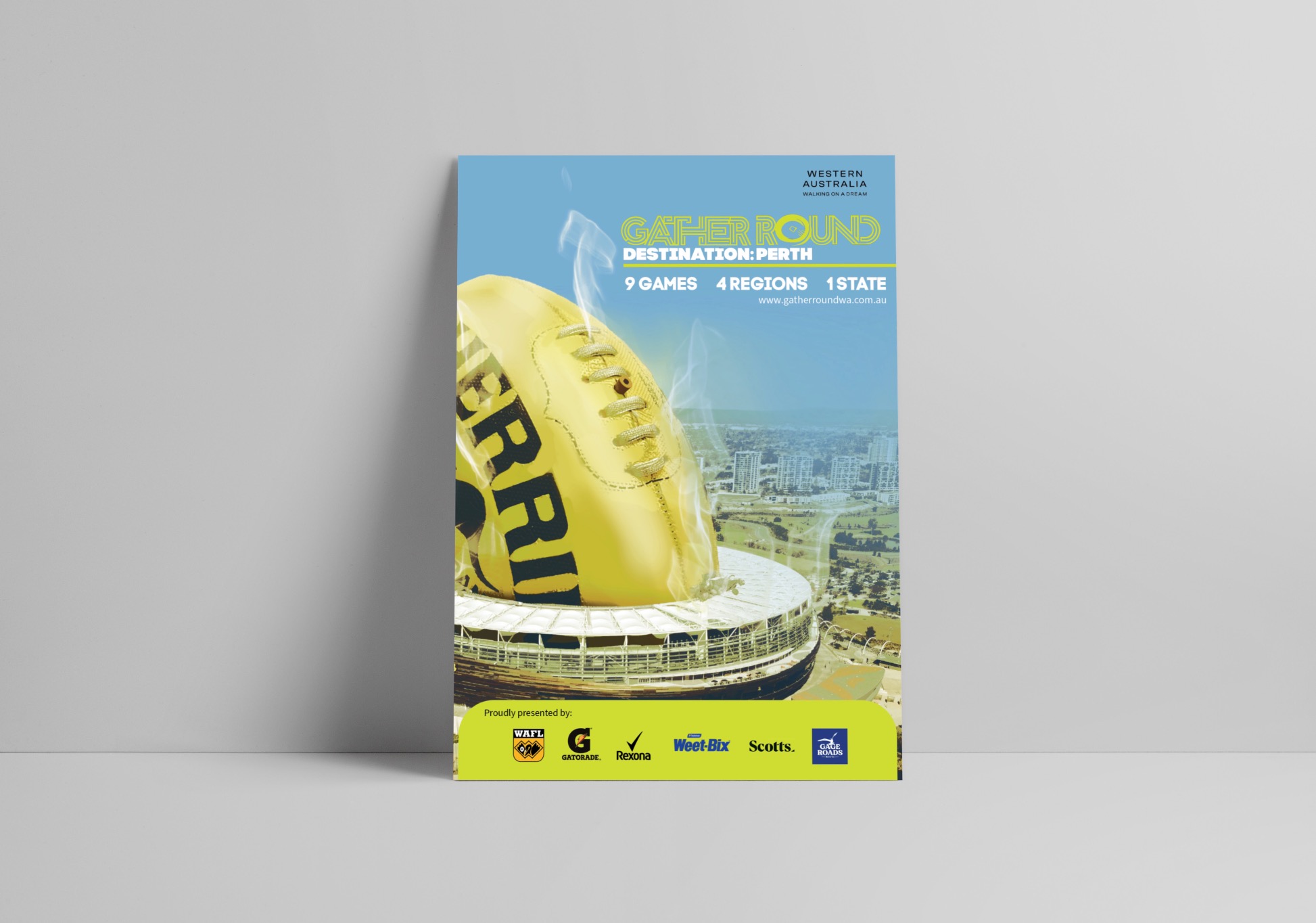Gather Round Destination: Perth is a round of football playing in metro and regional Western Australia to promote out of state tourism.